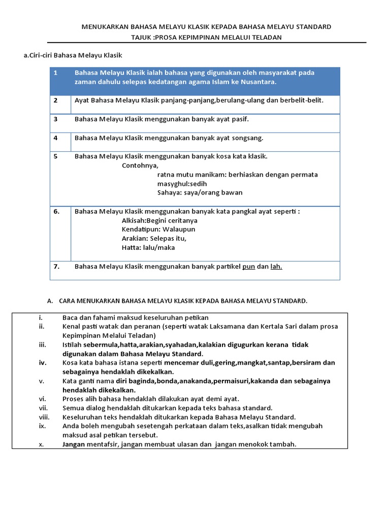 Menukarkan Bahasa Melayu Klasik Kepada Bahasa Melayu Standard Pdf